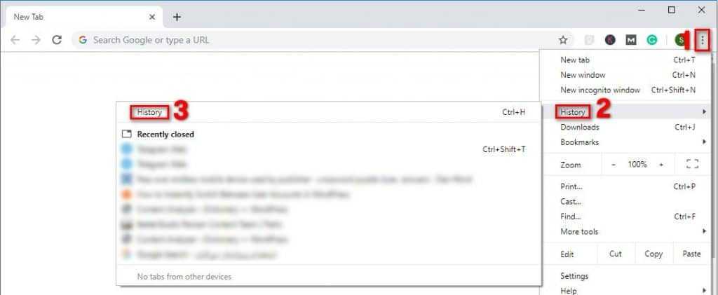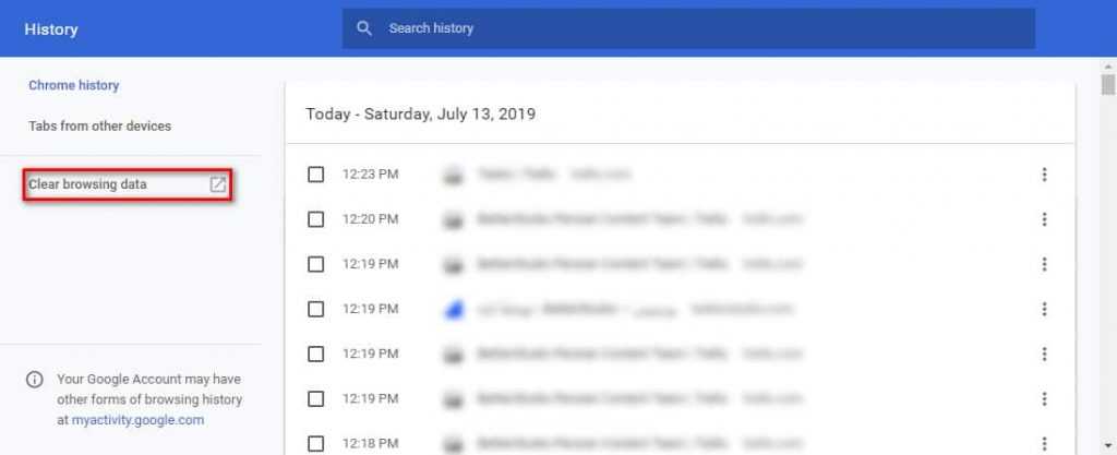 После открытия Chrome в правом верхнем углу вы увидите три точки. Нажмите здесь. Затем нажмите «История» и в левой части нажмите «Очистить данные просмотра». Откроется новая страница, в раскрывающемся меню выберите «начало времени».