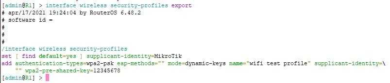 - Если вы сбросили в «ноль» ваш девайс, настроили его, и сделали export без каких-либо ключей, то на выходе получаете текущий конфиг девайса;