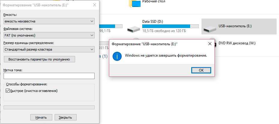 Что же делать, если Windows не удается завершить форматирование?