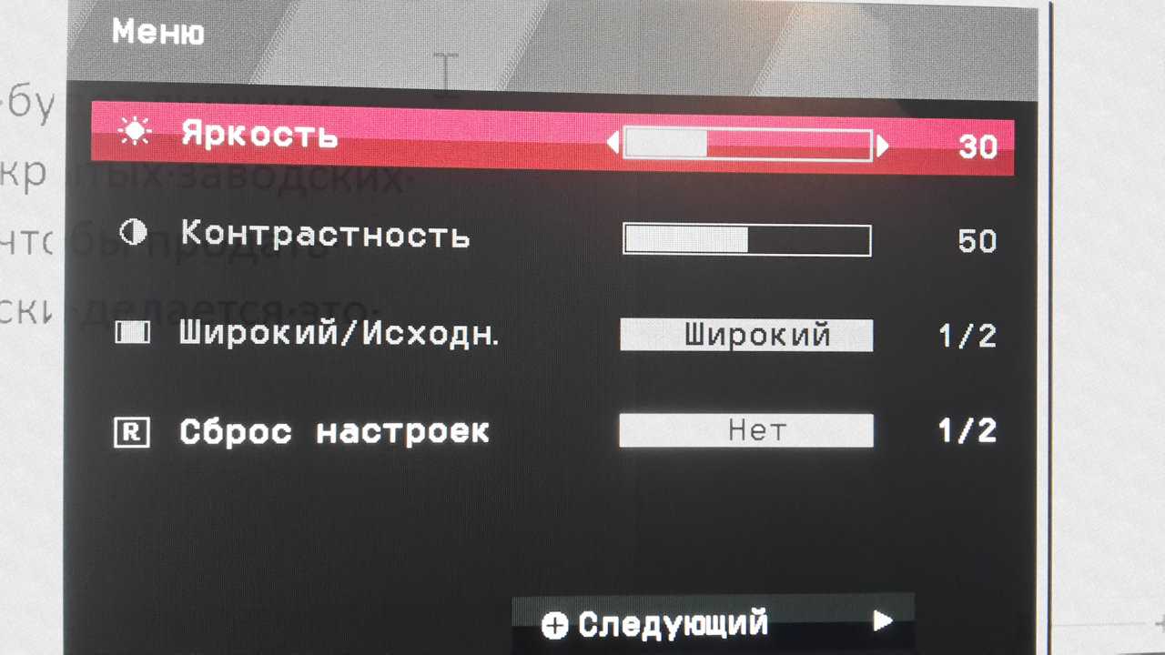Выше я упоминал о том, что появление полос часто является следствием аппаратной поломки. Но иногда нюансы заключаются в настройке. Для начала следует попробовать сбросить установки монитора до заводских параметров. Сделать это очень просто. На корпусе устройства есть кнопки, которые позволяют поменять гамму, яркость, контрастность. Среди них всегда найдется кнопка сброса до заводских параметров. С ее помощью монитор возвращается к заводским настройкам.