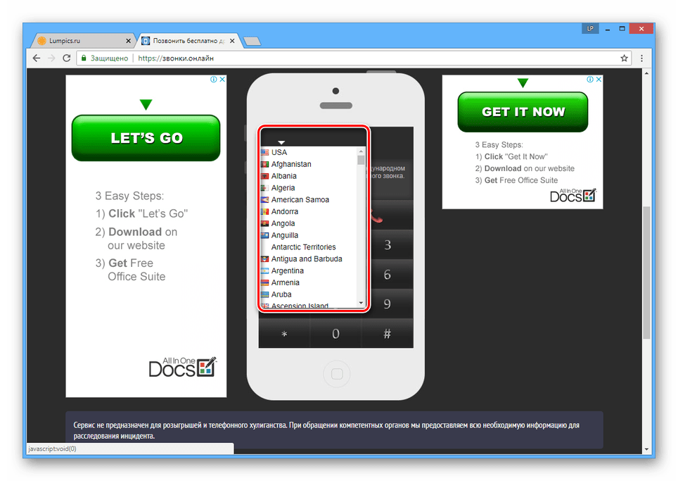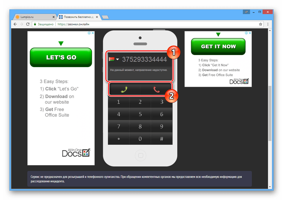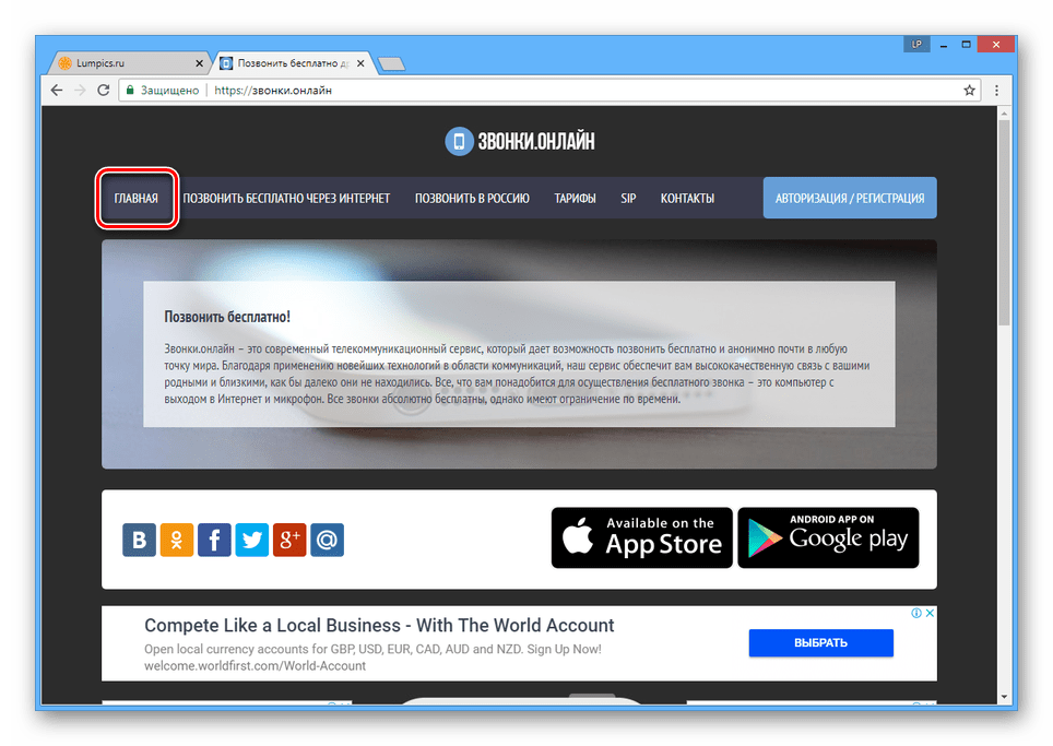 После перехода на сайт сервиса нажимаем кнопку «Позвонить».