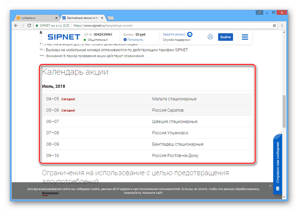 Более подробно узнать об акции можно на соответствующей странице сайта SIPNET.