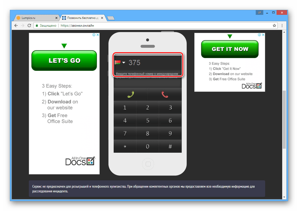Данный сервис, как и предыдущий, можно использовать с помощью любого современного интернет-обозревателя. Сами же услуги по совершению бесплатных звонков предоставляются со значительными ограничениями, но при этом не требуется регистрация.