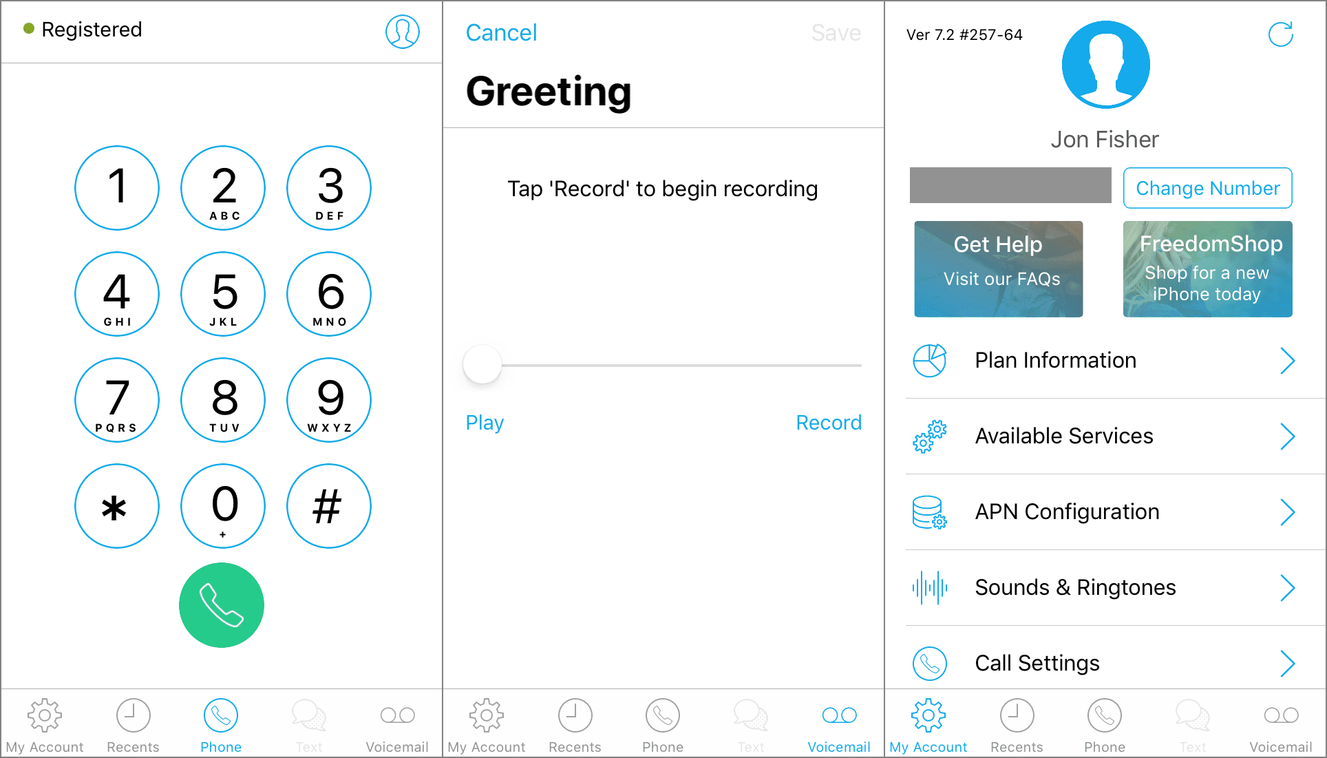 Настраиваемое приветствие голосовой почты также поддерживается. Кроме того, FreedomPop связан с вашим существующим списком контактов, поэтому очень легко начать звонить по телефону и отправлять текстовые сообщения .