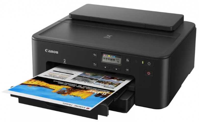 - Струйный принтер Canon PIXMA TS704. Этот принтер стоит 5490 рублей. Он очень компактный и удобный в обращении. Принтер работает бесшумно, экономно расходует чернила. Подходит для работы в офисе и домашнего использования. Скорость вывода изображений — 15 в минуту. Вмещает в себя 350 листов бумаги формата A4.