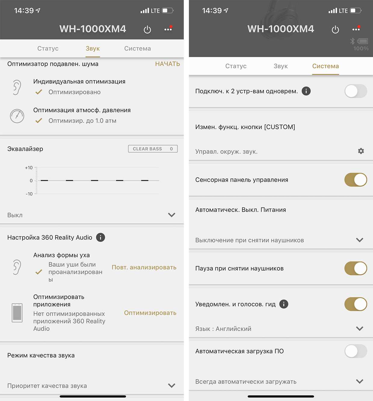 Не буду подробно останавливаться на возможностях приложения — в Sony Headphones добавились фичи, связанные с возможностями XM4, ставить надо обязательно ради обновления прошивки, настройки управления окружающим звуком и 360 Reality Audio, тут можно оптимизировать атмосферное давление, играть с эквалайзером. Повторюсь, СТАВИТЬ ОБЯЗАТЕЛЬНО! Бо́льшая часть манипуляций с наушниками происходит в программе.