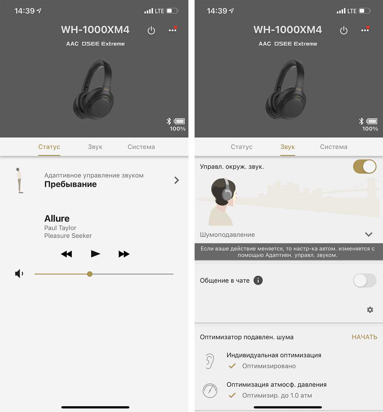 ► оптимизация шумоподавления под вас. Она двойная. Во-первых, наушники умеют изменять ANC, исходя из атмосферного давления. Это очень полезно в самолёте, разницу реально слышишь.
