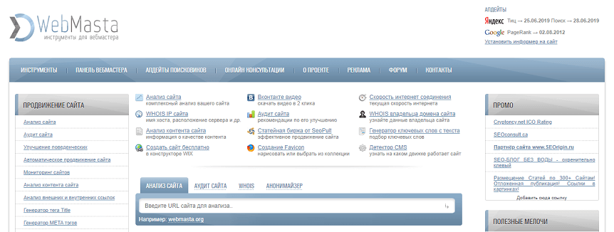 Анализ сайта Webmasta
