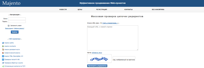 Массовая проверка цепочек редиректов Majento