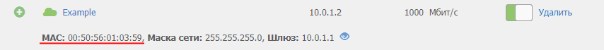 - Включение ползунка в положение ON активирует интерфейс, он получает настройки по dhcp.