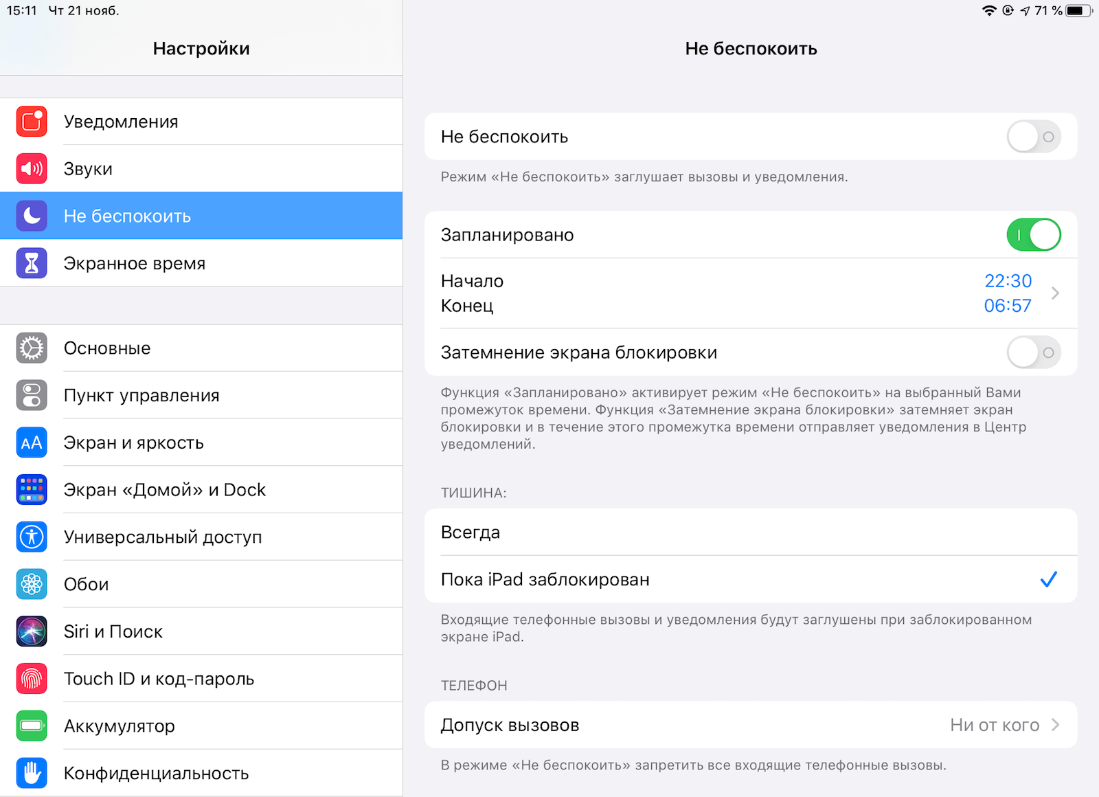 Отключите режим «Не беспокоить», переведя тумблер в неактивное положение.
