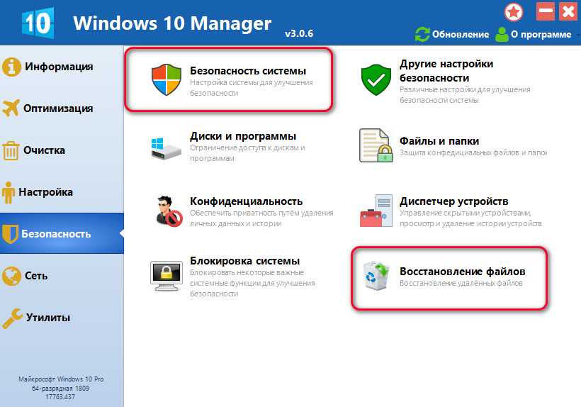 Функция «восстановление файлов». Данная команда сама говорит за себя. Другими словами, Windows 10 Manager даёт нам возможность восстанавливать файлы, которые мы по тем или иным причинам деинсталлировали.