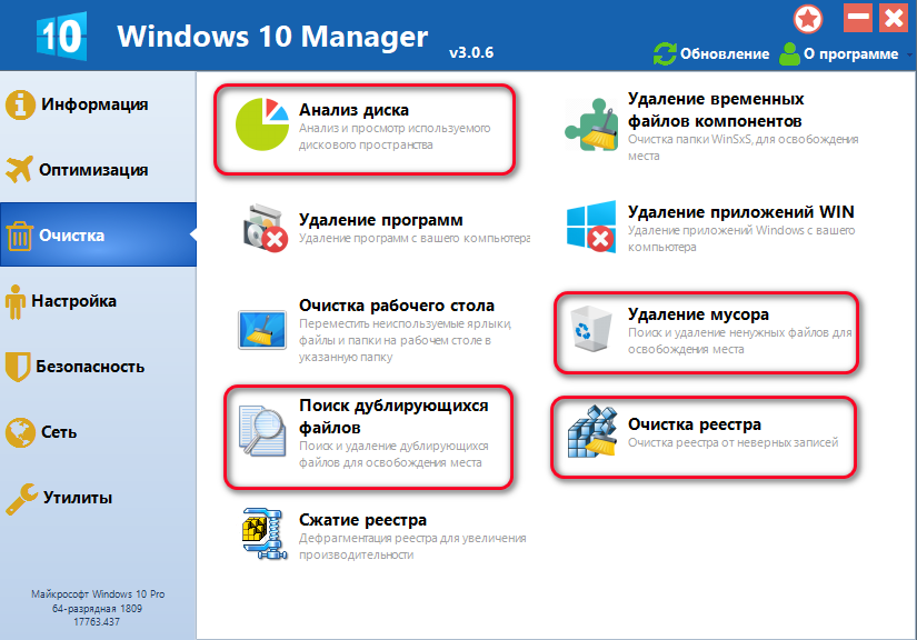 Данная версия программы была создана специально для системы Windows 10. Но, существует и для 7, которая называется, соответственно — Windows 7 Manager. Отличная программа очистки системы. Также является комбайном, где присутствует всё в одном. От восстановления системы, где можно создать точку восстановления, до «Информации о системе», «Менеджере процессов и прочее».