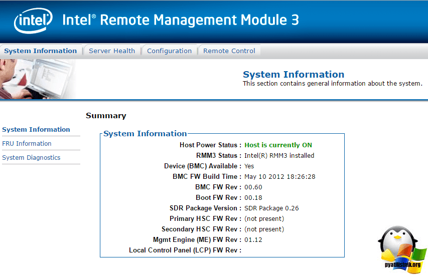 Как видите настроить BMC порт у серверов Intel очень просто, а дальнейшее управление через remote management module 3, вызовет только положительные эмоции, функционала конечно меньше чем у других вендоров, но администрировать пойдет.
