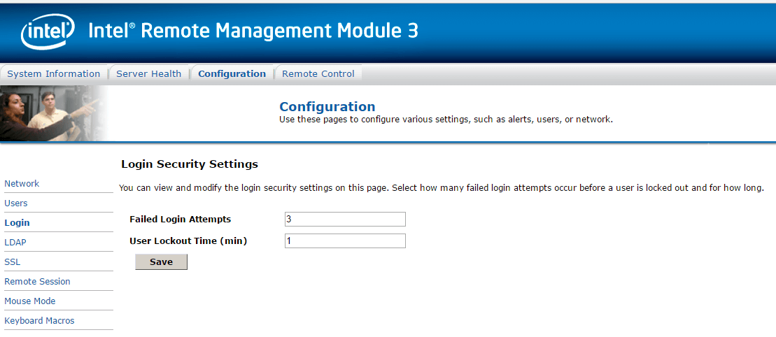 В пункте Login вы сможете задать некоторые политики безопасности для сервера s5520ur, а именно: