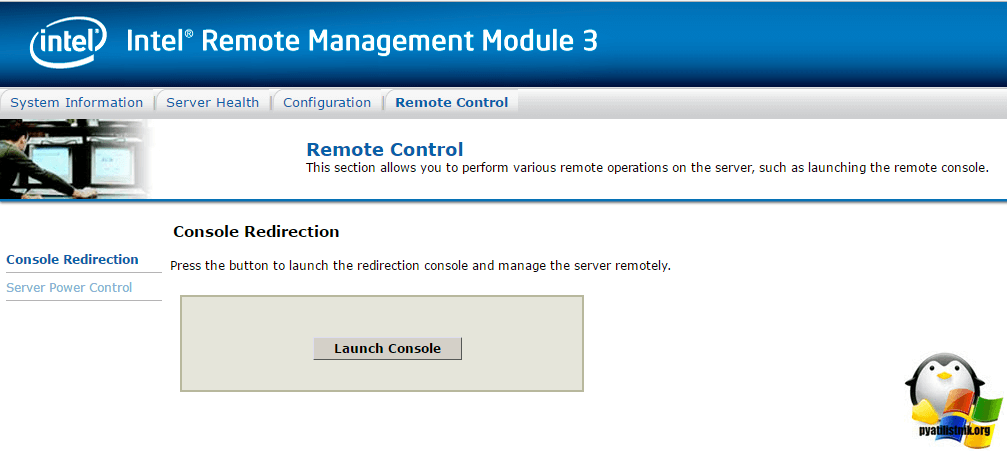 И переходим к последним пунктам Remote Control, тут в параметре Console Redirection вы сможете запускать Java KVM окно и видеть все, что происходит на экране сервера, будто вы работаете за ним физически.