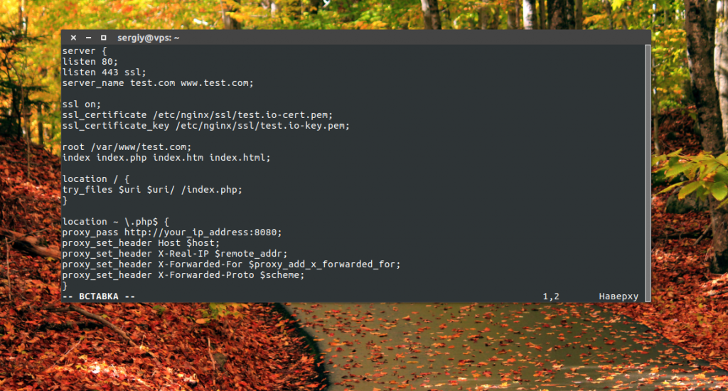 Нам нужно добавить несколько строк в /etc/nginx/sites-available/apache: