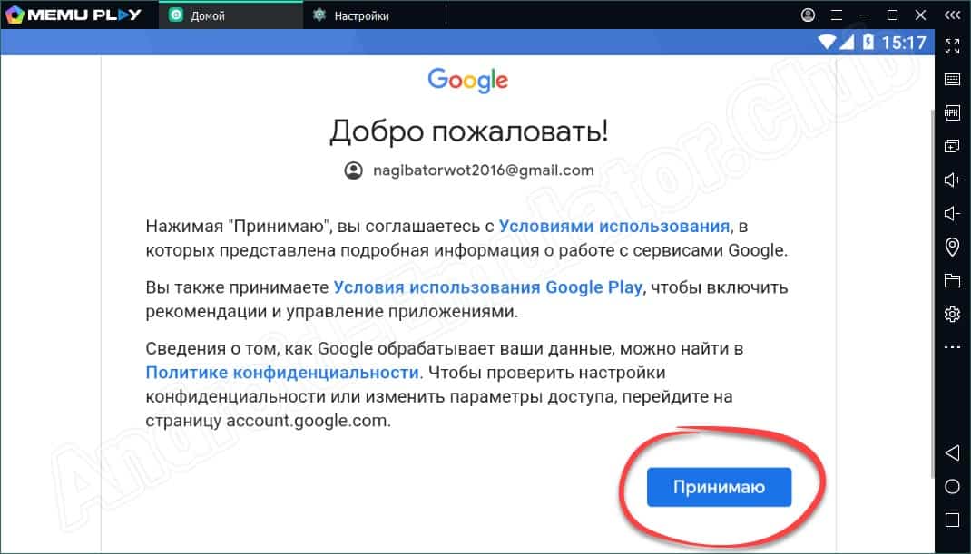 Данная программа для эмуляции имеет стандартные условия для входа: данные аккаунта Google и все настройки легко можно привести в соответствие с вашим смартфоном.
