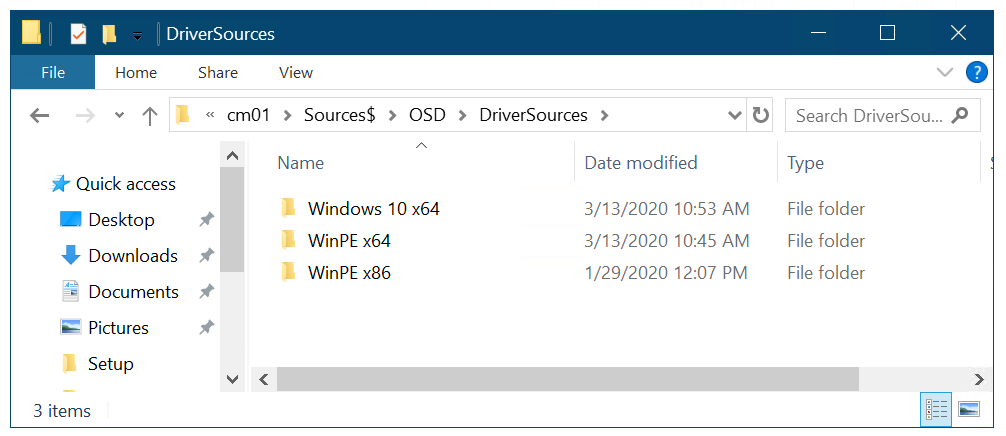 В этом разделе предполагается, что некоторые драйверы загружены в папку D:\\Sources\OSD\DriverSources\WinPE x64 на CM01.