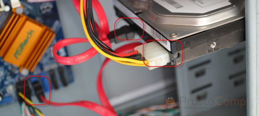 Важно убедиться, что правильно подключены шлейфы не только с самому винчестеру, но и к материнской плате
