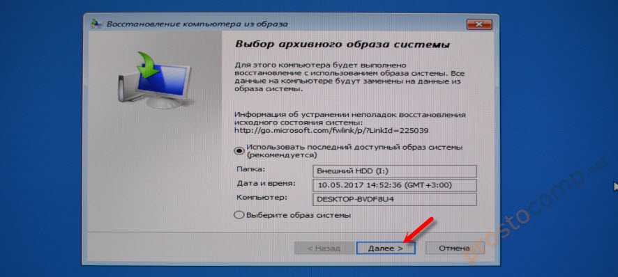 Подключите ваш внешний диск, содержащий резервную копию системного образа, если вы еще это не сделали. Теперь вы сможете восстановить с него ваш компьютер.