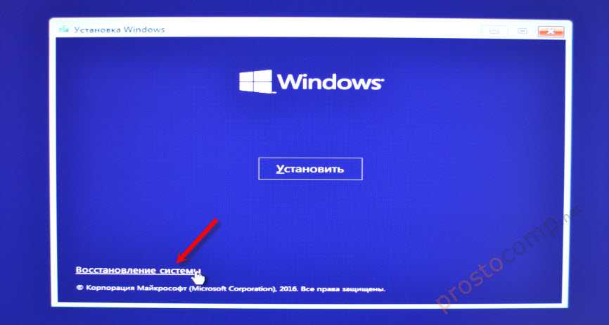 Если вы выполняете загрузку с установочного диска, то после выбора языка нужно нажать на «Восстановление системы».