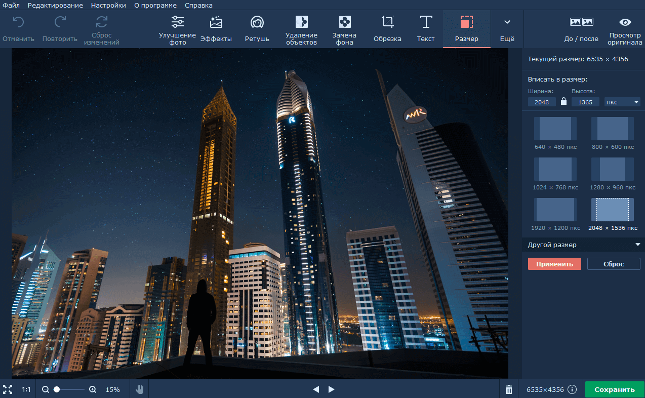 После того, как вы установите нужный размер фотографии, нажмите кнопку «Сохранить», чтобы экспортировать изображение в соответствующий формат.