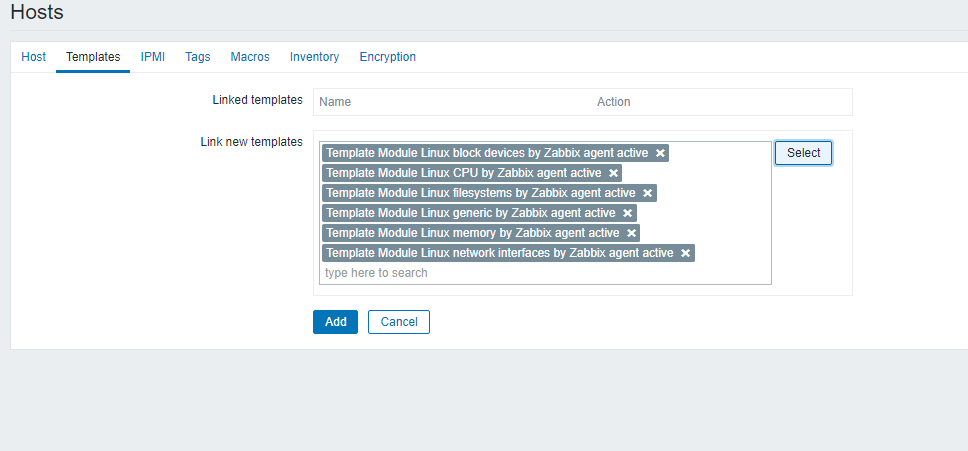 Как и в случае с Windows агентом, вам нужно добавить ваш Linux хост в настройках сервера Zabbix