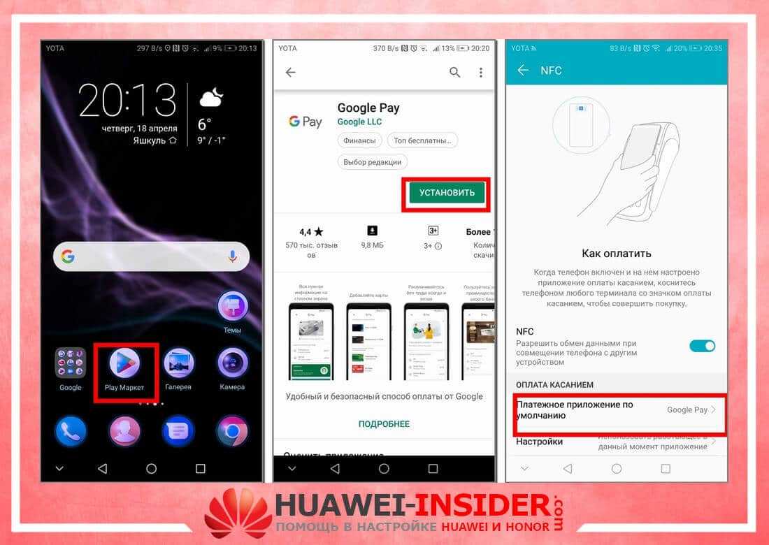 Привязка банковской карты к смартфону Huawei происходит в приложении Google Pay. Делается это так: