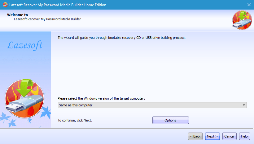 - Загрузите установщик программы Lazesoft Recover My Password на любой доступный компьютер.
