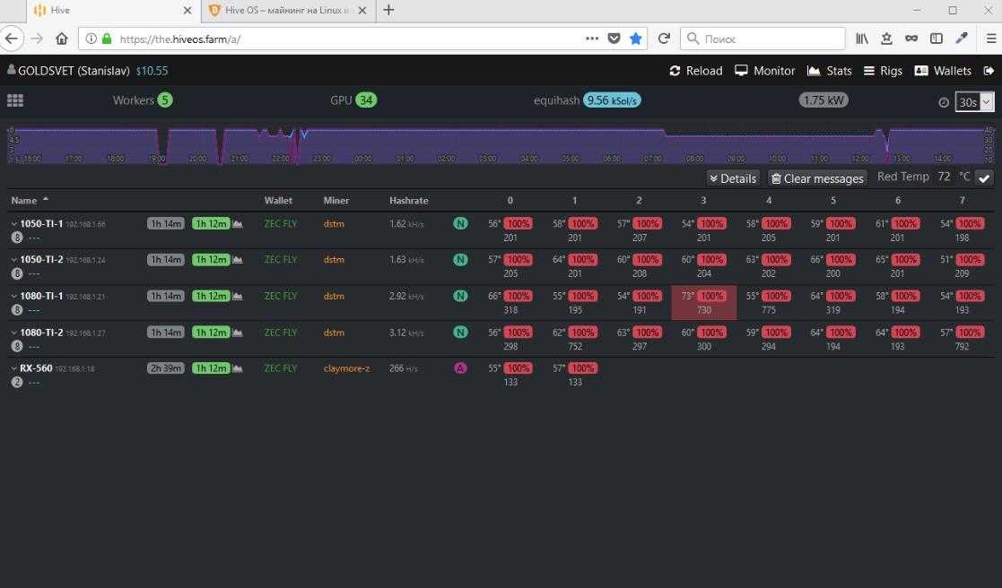 - Комфорт в использовании. Линукс оснащен инновационным программным обеспечением, которое предоставляет пользователю удаленный контроль над установленными ригами (разгон кулеров, хешрейт, температура видеокарт и т. д.).