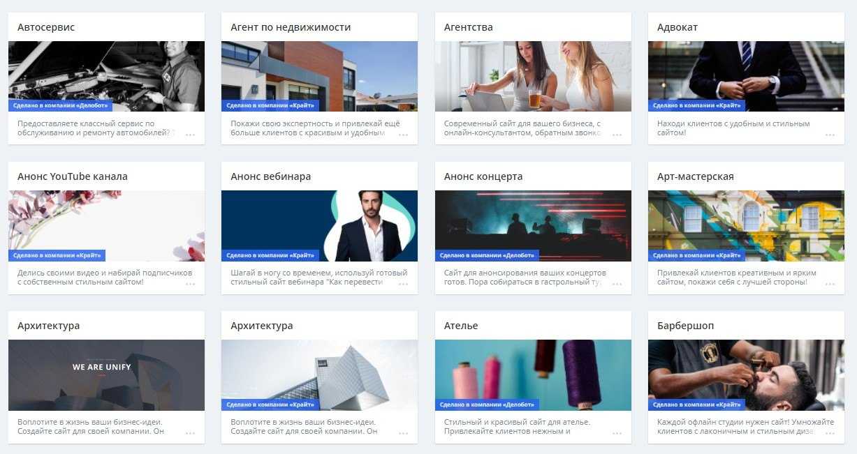 - широкий ассортимент по шаблонам, охватывающий порядка 40 сфер бизнеса;