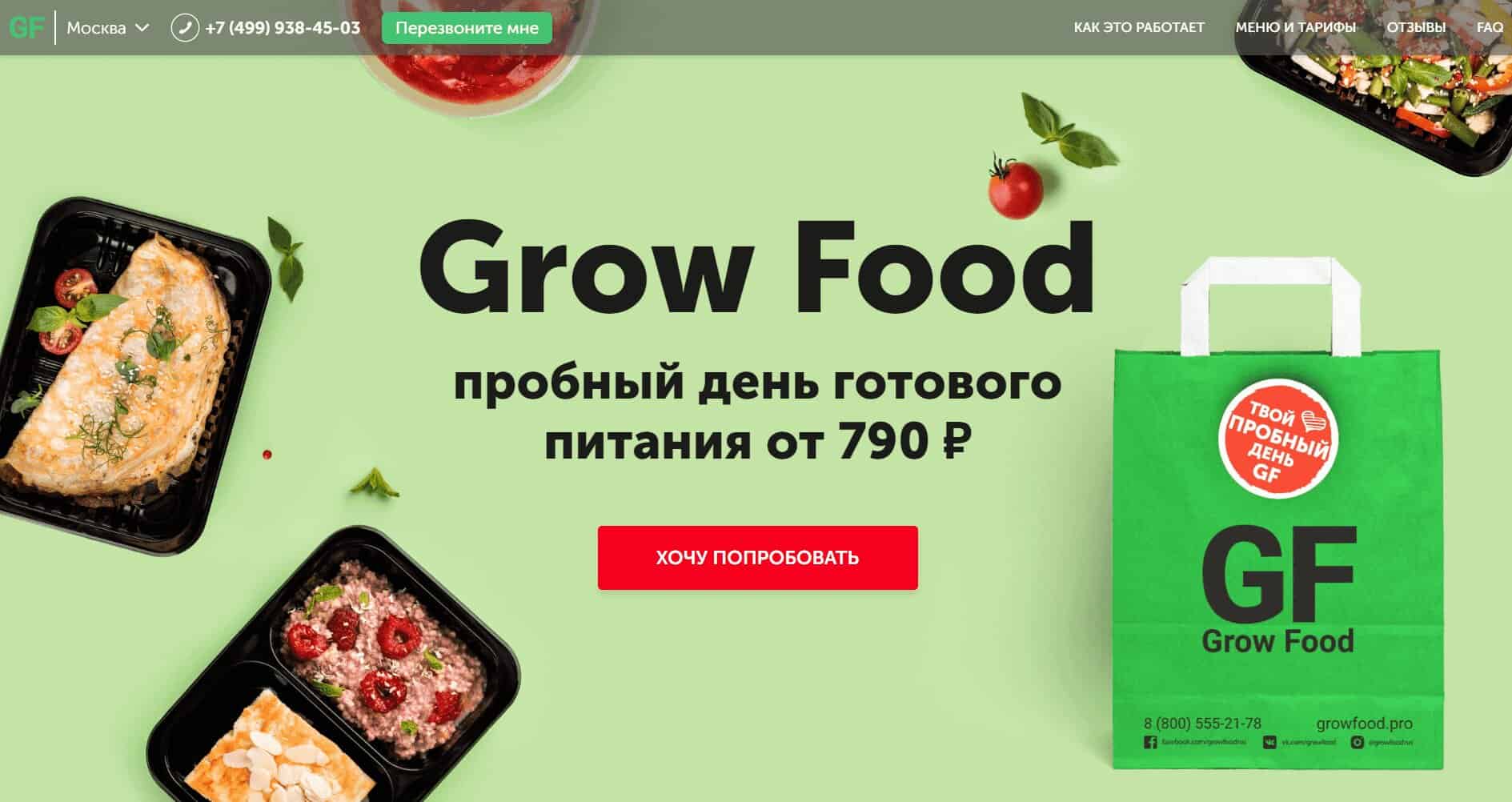 | GrowFood | от 4370 руб./ 6 дней | с 7:00 до 12:00 и с 18:00 до 23:00, в течение 2-х часов | утром – в пределах МКАД, вечером – Москва и пригороды | Заказать |