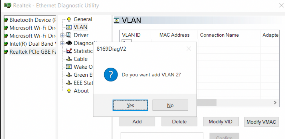 Для сетевых карт Realtek вы можете настроить несколько виртуальных сетевых адаптеров с различными VLAN при помощи специальной утилиты от вендора — Realtek Ethernet Diagnostic Utility. В описании на сайте производителя убедитесь, что ваш сетевой контроллер Realtek поддерживает настройку VLAN.