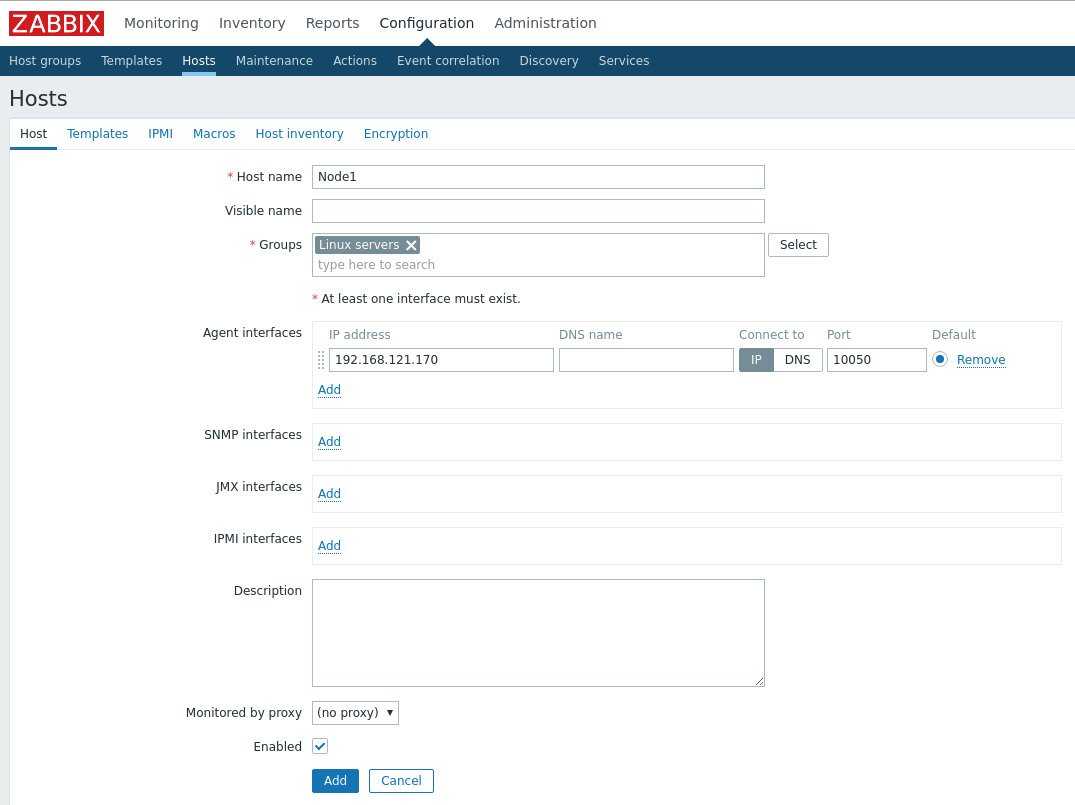 Процедура добавления нового хоста для мониторинга к Zabbix серверу состоит из двух шагов.