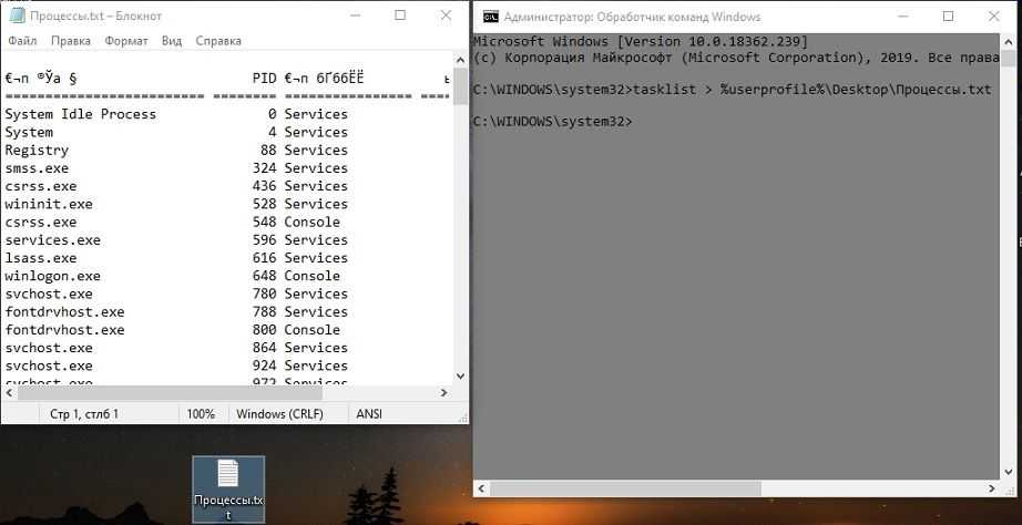 Сначала выведем на экран список всех запущенных процессов при помощи команды tasklist: