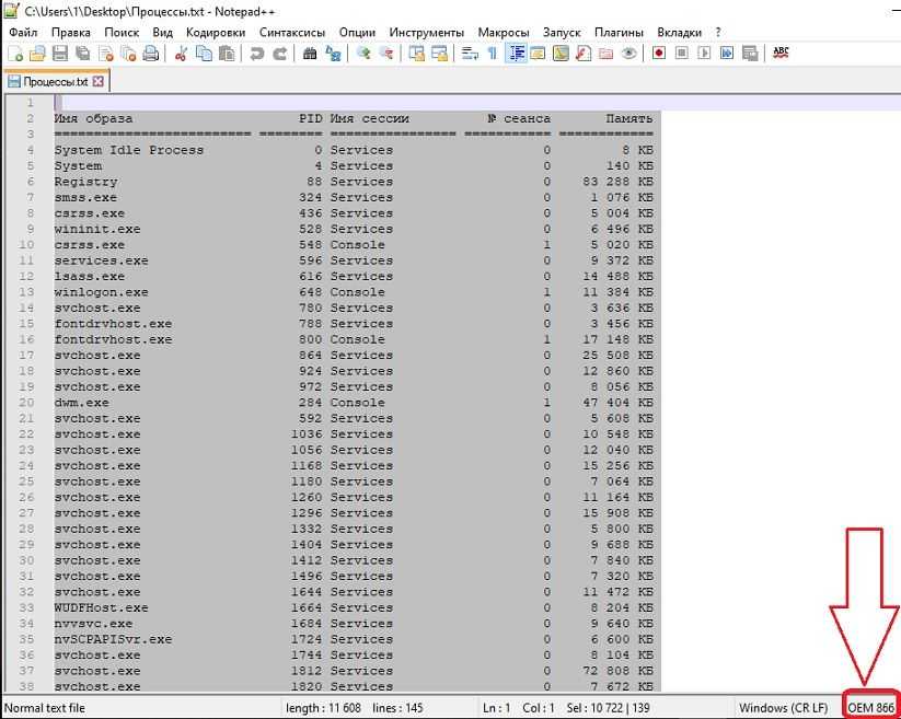 в котором запущенные на момент исполнения команды будут представлены в удобочитаемом виде. Текстовый вывод не понимает кириллицы, так что я обычно использую специальные текстовые редакторы типа Notepad ++. Но, думаю, что в файле написано, понятно и так: