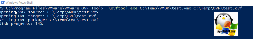Где у меня в папке C:\Temp\OVF\ будет создан test.ovf. Сам процесс преобразования VMDK вы можете наблюдать в процентах.