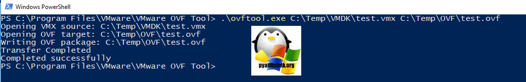 .\ovftool.exe C:\Temp\VMDK\test.vmx C:\Temp\OVF\test.ovf