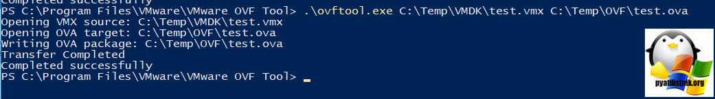 .\ovftool.exe C:\Temp\VMDK\test.vmx C:\Temp\OVF\test.ova