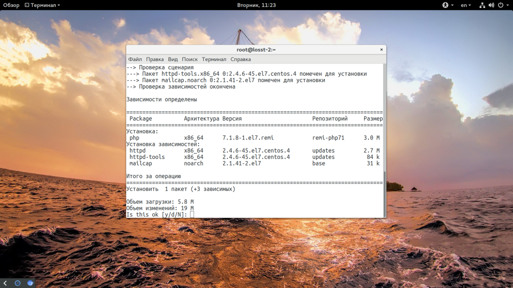 * В CentOS 7 будет установлена php версии 5.4. Если необходимо установить PHP 7, читайте статью Как установить PHP 7 на CentOS 7.