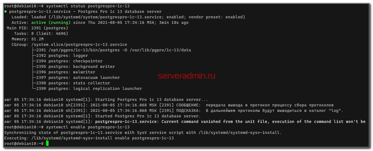 # systemctl enable postgrespro-1c-13