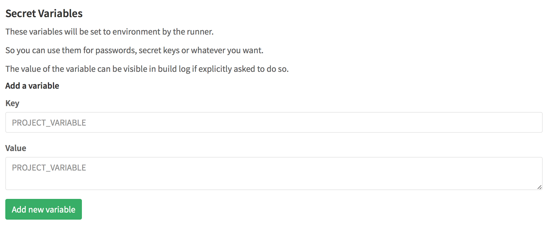 - поле variables может содержать дополнительные переменные окружения, необходимые для выполнения операций;