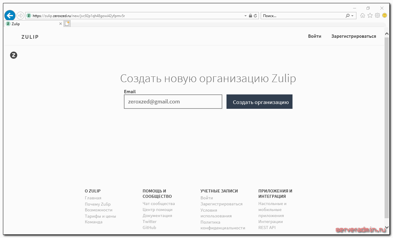 На этом непосредственно установка корпоративного чата zulip закончена. Перейдем к его настройке.