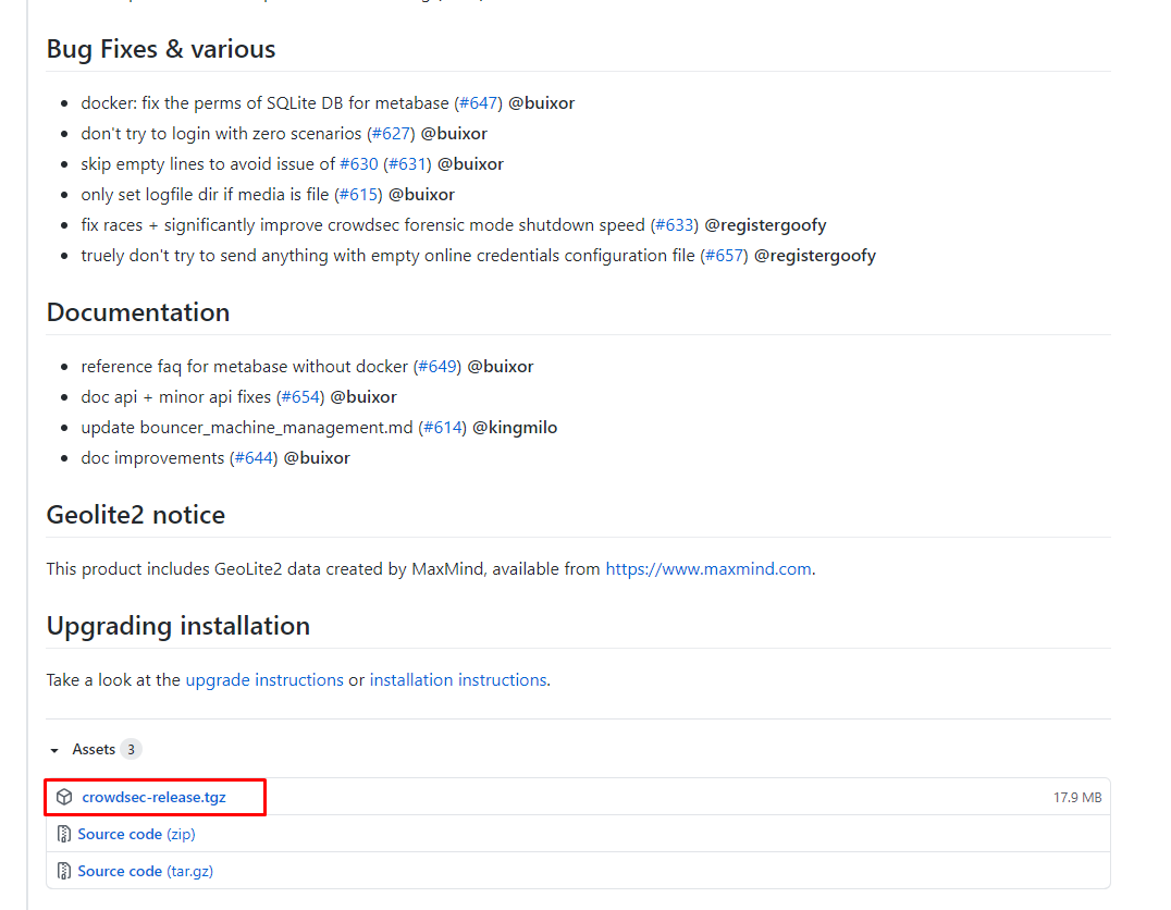 $ wget -qO — https://github.com/crowdsecurity/crowdsec/releases/latest/download/crowdsec-release.tgz | tar zxvf -$