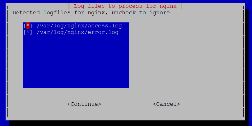 Он сразу же определил основные сервисы, за логами которых будет следить. В моем случае это системные логи linux, лог авторизаций ssh и логи nginx. Далее он уточнит, какие именно лог файлы будет парсить. По умолчанию он проверяет дефолтные директории. Если что-то не нашел, то потом в конфигурационных файлах сможете вручную добавить нужные файлы с логами.