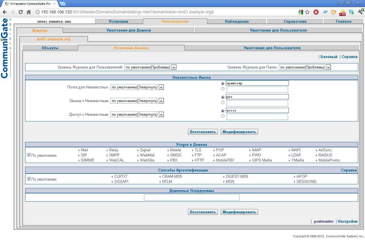 Один сервер может обслуживать несколько доменов. Узлы кластера способны обрабатывать только определенный вид трафика (например, по региону), для распределения запросов используется технология SIP Farm. Решение легко масштабируется до любых размеров. К слову, на CommuniGate Pro построена сеть IP-телефонии оператора SIPNET.