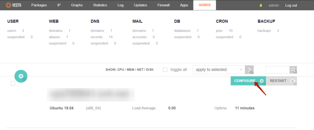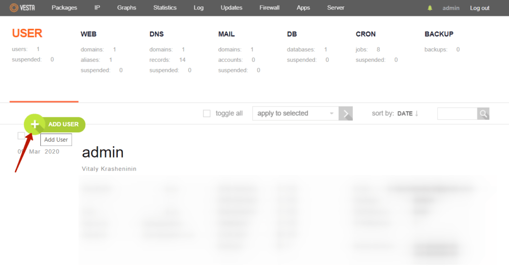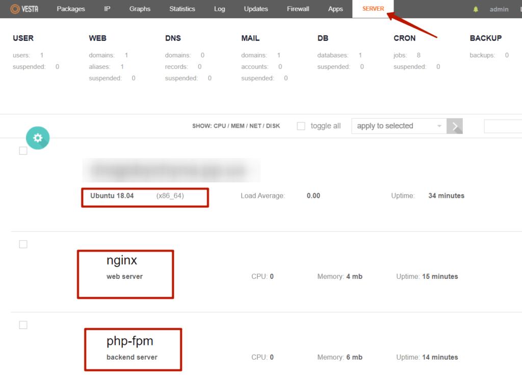 - Установили панель управления сервером VestaCP и теперь у нас есть удобный и привлекательный внешне интерфейс для управления сервером.