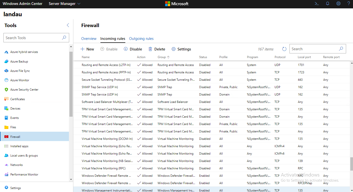 Проверить работу и статус этих правил можно в веб-консоли Windows Admin Center: