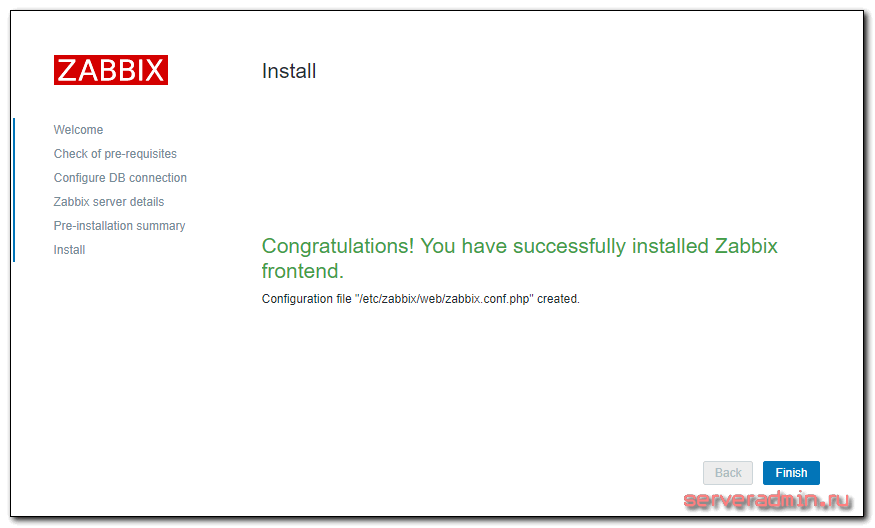 Если поучили это сообщение, то поздравляю, установка сервера мониторинга Zabbix 3.4 закончена.